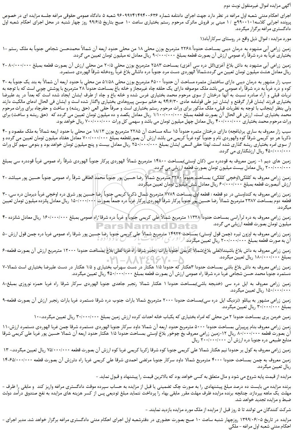 آگهی مزایده اموال غیرمنقول نوبت دوم