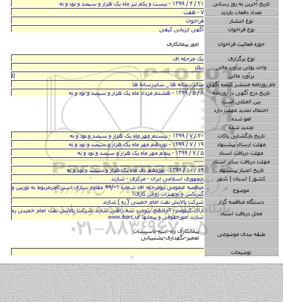 اراک.کیلومتر۲۰جادهخ بروجرد سه راهی شارند.شرکت پالایش نفت امام خمینی ره شازند امورحقوقی و پیمانها www.ikorc.ur
