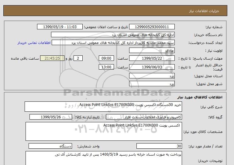 شرح کلی نیاز: خرید 30دستگاه اکسس پوینت Access Point LinkSys E1700N300
