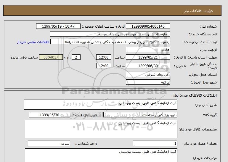 نام دستگاه خریدار:بیمارستان شهید دکتر بهشتی شهرستان مراغه