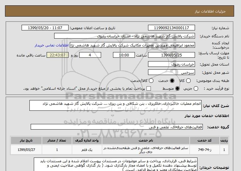 شرح کلی نیاز: انجام عملیات خاکبرداری، خاکریزی ، بتن شکافی و بتن ریزی ... شرکت پالایش گاز شهید هاشمی نژاد