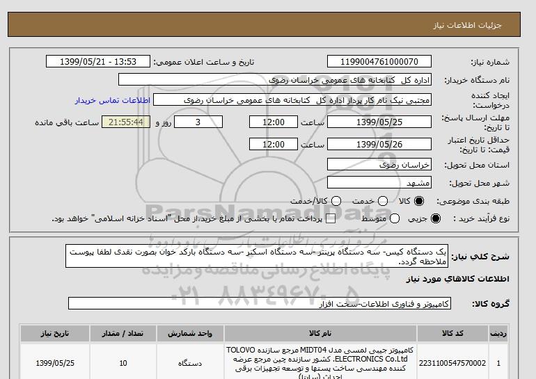 نام دستگاه خریدار:اداره کل کتابخانه های عمومی خراسان رضوی