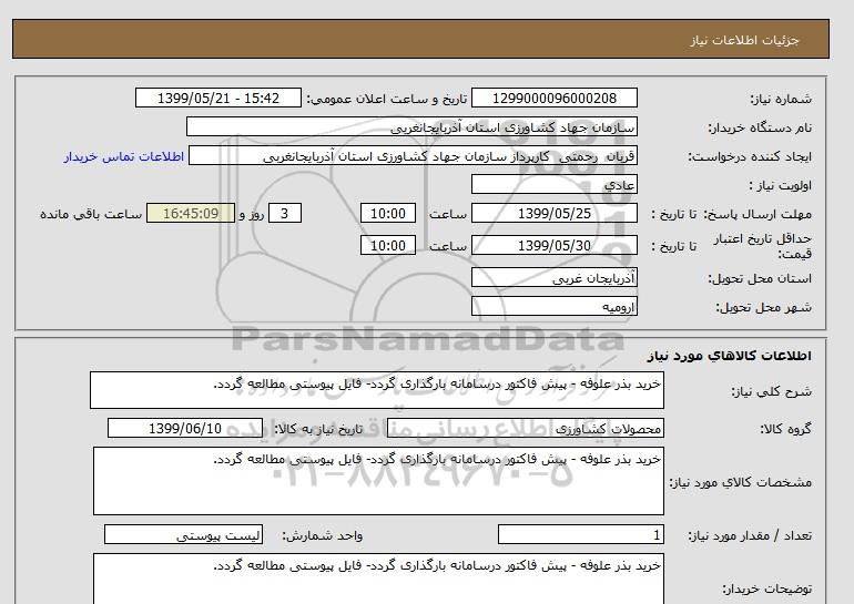 نام دستگاه خریدار:سازمان جهاد کشاورزی استان آذربایجانغربی