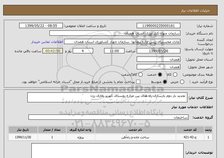 استعلام تجدید بار دوم بازسازی راه های بین مزارع روستای کهریز بغازی رزن , استعلام تجدید بار دوم بازسازی راه های بین مزارع روستای کهریز بغازی رزن
