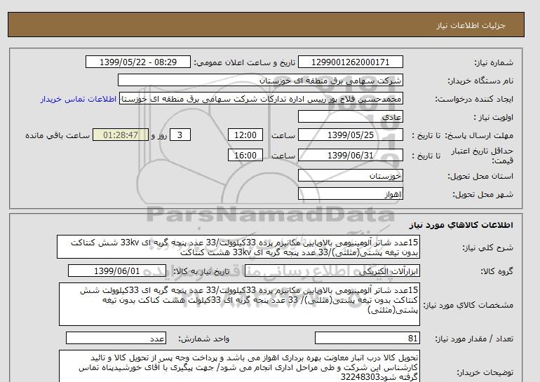 نام دستگاه خریدار:شرکت سهامی برق منطقه ای خوزستان