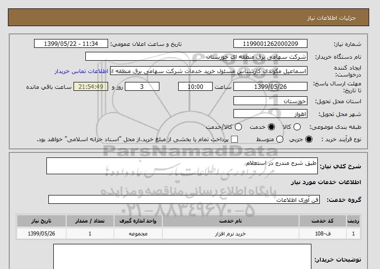 نام دستگاه خریدار:شرکت سهامی برق منطقه ای خوزستان