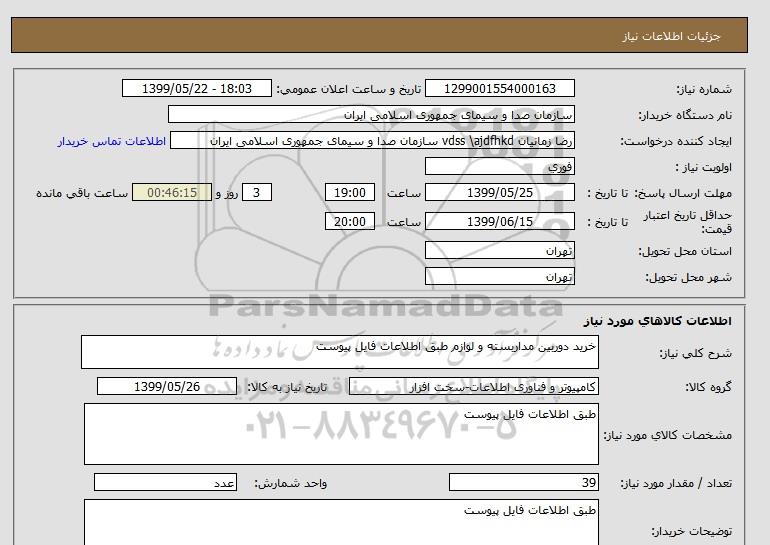نام دستگاه خریدار:سازمان صدا و سیمای جمهوری اسلامی ایران