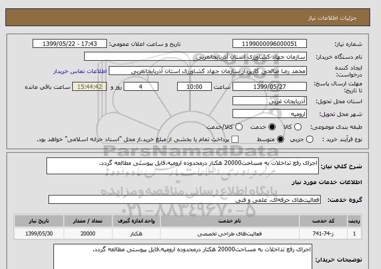 شرح کلی نیاز: اجرای رفع تداخلات به مساحت20000 هکتار درمحدوده ارومیه.فایل پیوستی مطالعه گردد.