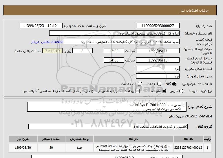 نام دستگاه خریدار:اداره کل کتابخانه های عمومی استان یزد