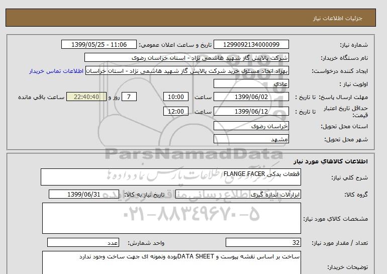 نام دستگاه خریدار:شرکت پالایش گاز شهید هاشمی نژاد - استان خراسان رضوی