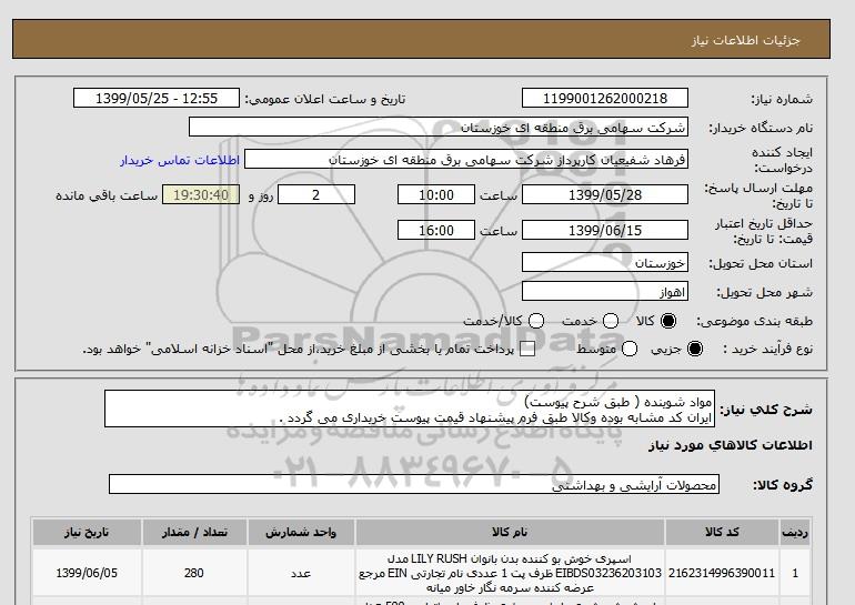 شرح کلی نیاز: مواد شوینده ( طبق شرح پیوست)