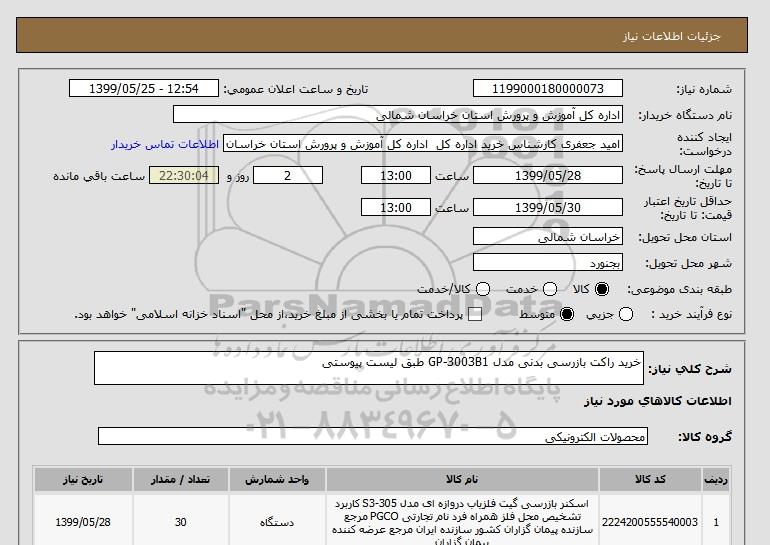 نام دستگاه خریدار:اداره کل آموزش و پرورش استان خراسان شمالی