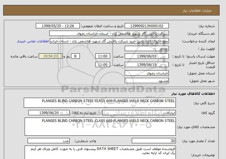 مشخصات کالای مورد نیاز: FLANGES BLIND CARBON STEEL CLASS 600-FLANGES WELD NECK CARBON STEEL