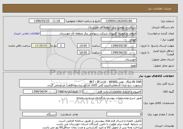 نام دستگاه خریدار:شرکت سهامی برق منطقه ای خوزستان