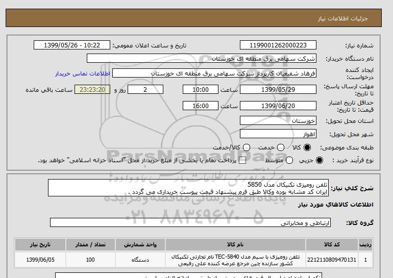 نام دستگاه خریدار:شرکت سهامی برق منطقه ای خوزستان
