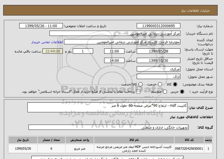شرح کلی نیاز: کابینت mdf - ارتفاع 90*عرض صفحه 60 -طول 6 متر