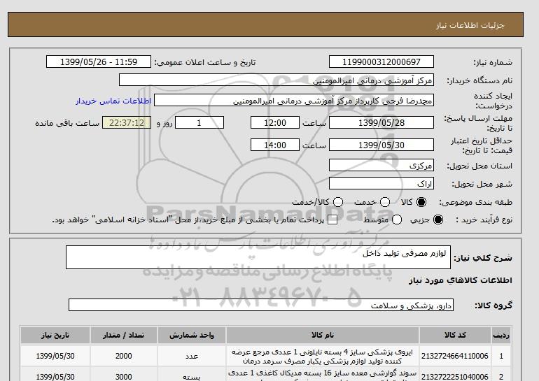 شرح کلی نیاز: لوازم مصرفی تولید داخل