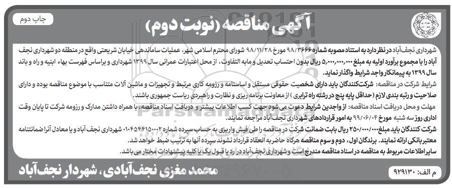 دو شهرداری نجف آباد را با مجموع برآورد اولیه به مبلغ 5.000.000.000 ریال
