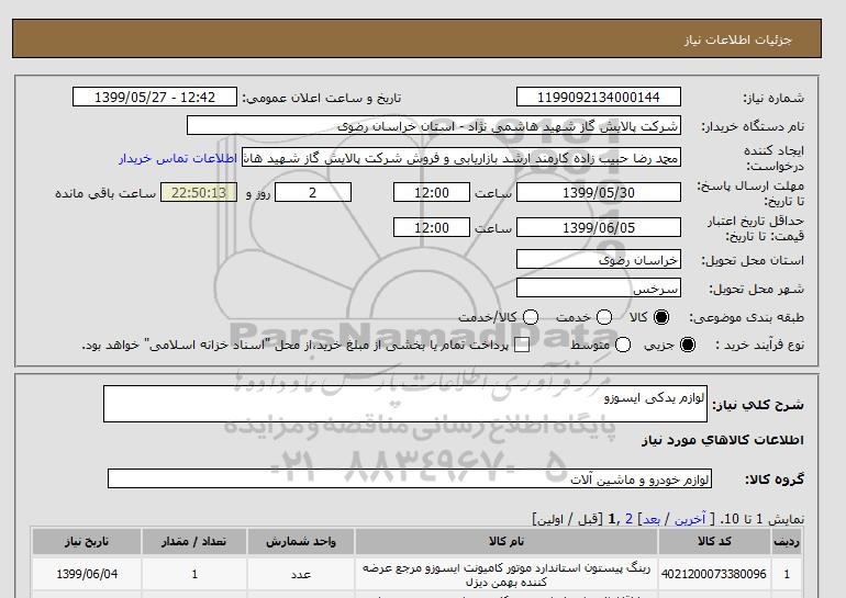 نام دستگاه خریدار:شرکت پالایش گاز شهید هاشمی نژاد - استان خراسان رضوی