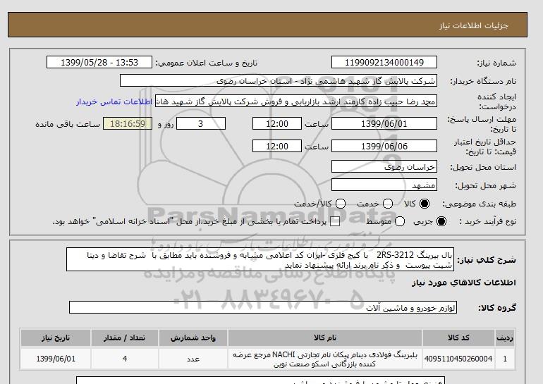 نام دستگاه خریدار:شرکت پالایش گاز شهید هاشمی نژاد - استان خراسان رضوی