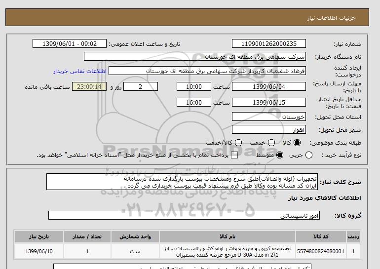 نام دستگاه خریدار:شرکت سهامی برق منطقه ای خوزستان