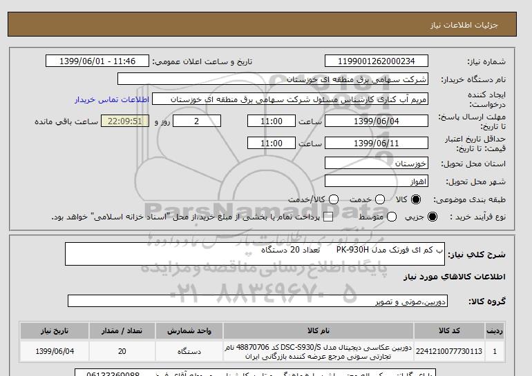 نام دستگاه خریدار:شرکت سهامی برق منطقه ای خوزستان
