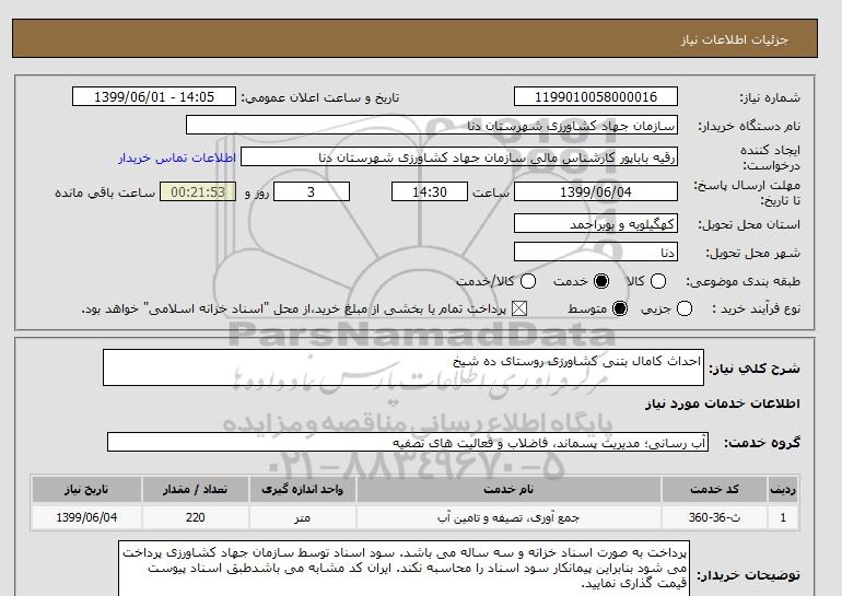 شرح کلی نیاز: احداث کامال بتنی کشاورزی روستای ده شیخ