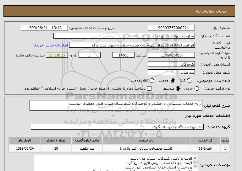 شرح کلی نیاز: ارایه خدمات پشتیبانی به عشایر و کوچندگان شهرستان میناب طبق دعوتنامه پیوست