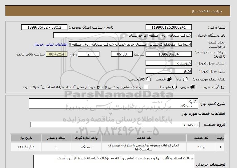 نام دستگاه خریدار:شرکت سهامی برق منطقه ای خوزستان