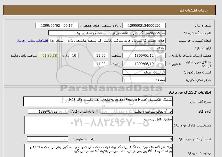 نام دستگاه خریدار:شرکت پالایش گاز شهید هاشمی نژاد - استان خراسان رضوی
