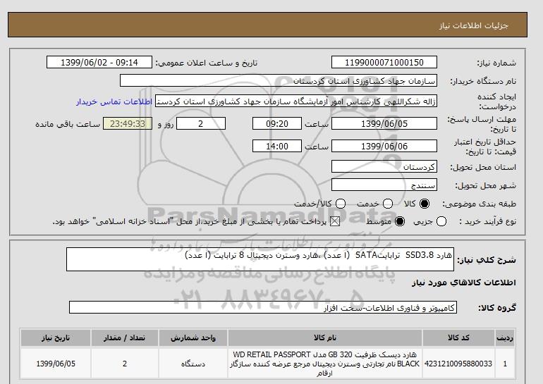 شرح کلی نیاز: هارد SSD3.8 ترابایتSATA (ا عدد) ،هارد وسترن دیجیتال 8 ترابایت (ا عدد)