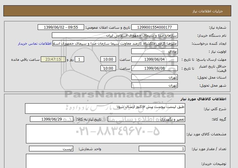 نام دستگاه خریدار:سازمان صدا و سیمای جمهوری اسلامی ایران
