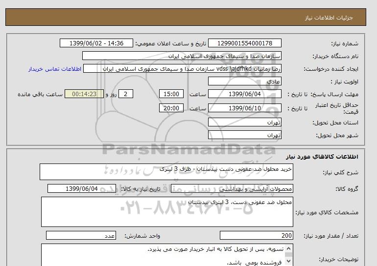 نام دستگاه خریدار:سازمان صدا و سیمای جمهوری اسلامی ایران