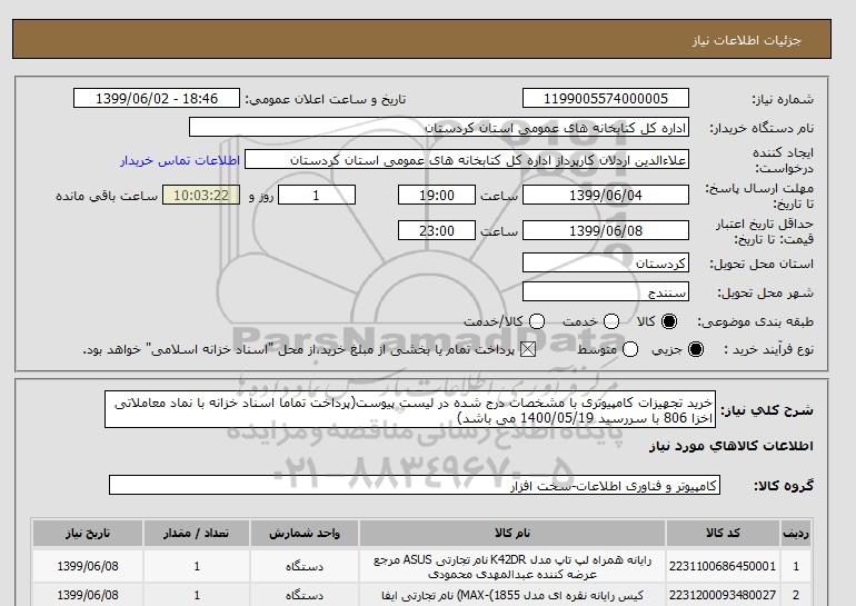 نام دستگاه خریدار:اداره کل کتابخانه های عمومی استان کردستان