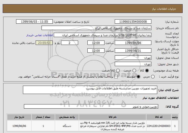 نام دستگاه خریدار:سازمان صدا و سیمای جمهوری اسلامی ایران