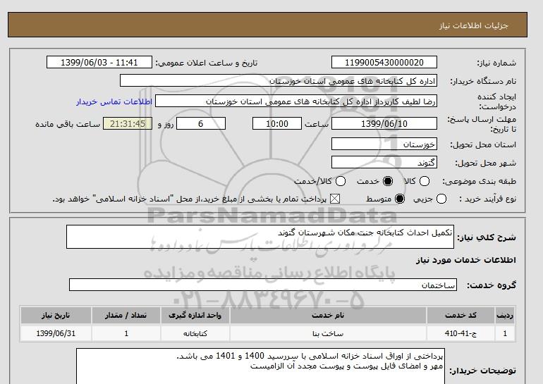 شرح کلی نیاز: تکمیل احداث کتابخانه جنت مکان شهرستان گتوند