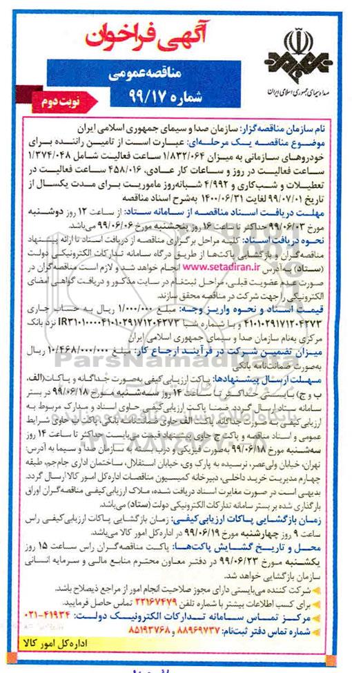 - نام سازمان مناقصه گزار: سازمان صدا و سیمای جمهوری اسلامی ایران