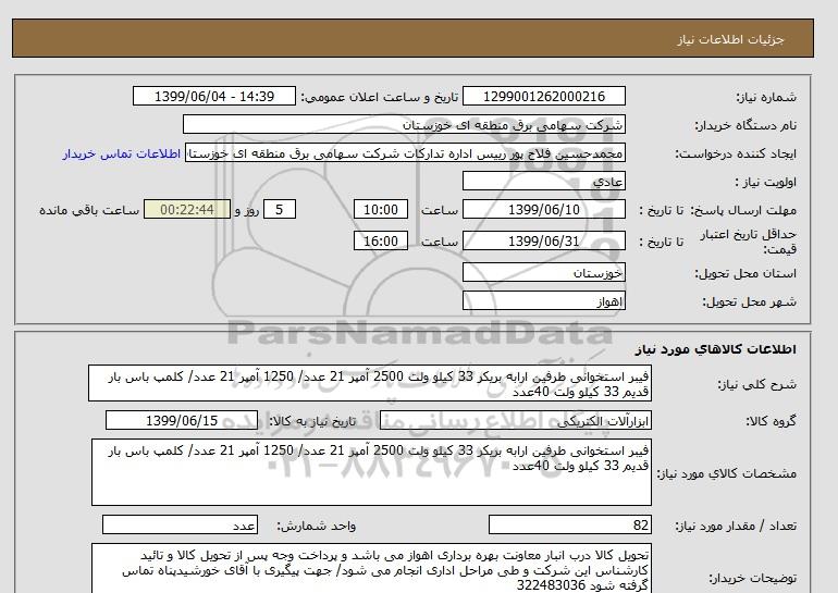 نام دستگاه خریدار:شرکت سهامی برق منطقه ای خوزستان
