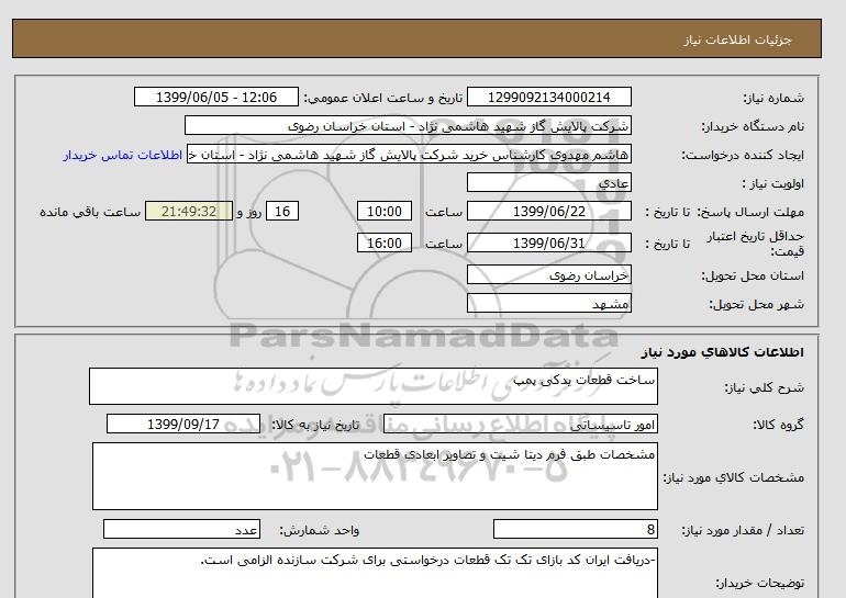 نام دستگاه خریدار:شرکت پالایش گاز شهید هاشمی نژاد - استان خراسان رضوی