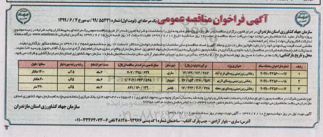 2099004356000017 زهکش زیرزمینی روستای فرح آباد  14.149.912.787 ساری 707.495.639 1400 هکتار