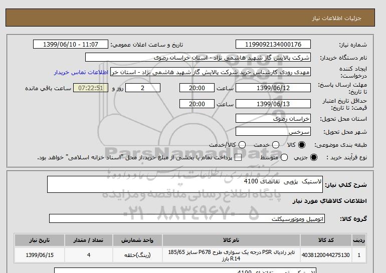 نام دستگاه خریدار:شرکت پالایش گاز شهید هاشمی نژاد - استان خراسان رضوی
