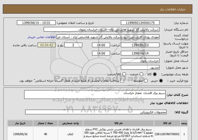 شرح کلی نیاز: سیم برق افشان ممتاز خراسان