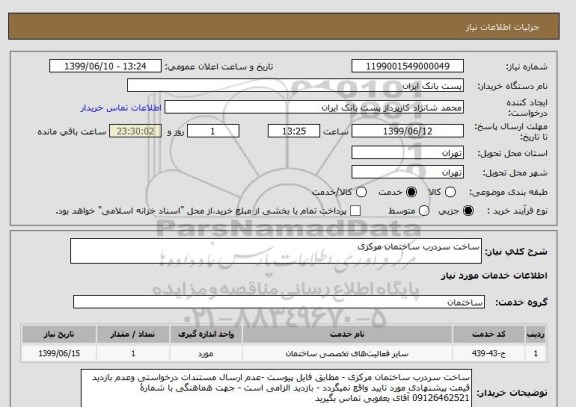شرح کلی نیاز: ساخت سردرب ساختمان مرکزی