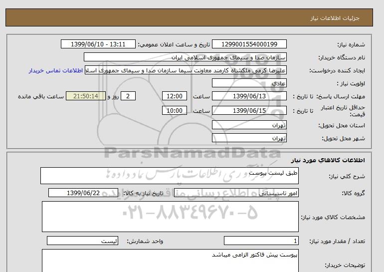 نام دستگاه خریدار:سازمان صدا و سیمای جمهوری اسلامی ایران