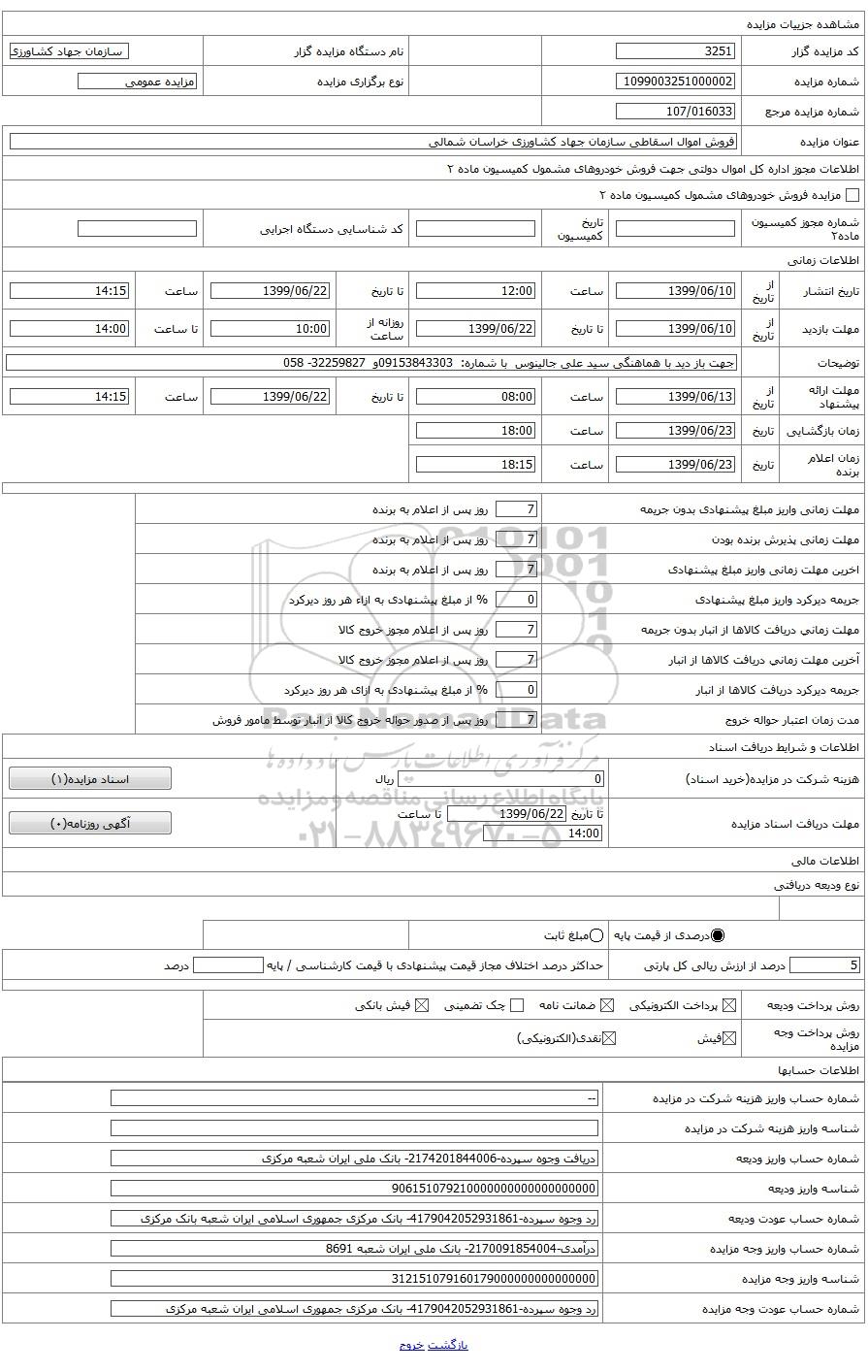 کد مزایده گزار3251نام دستگاه مزایده گزار سازمان جهاد کشاورزی