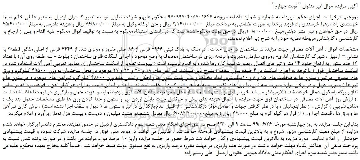 "آگهی مزایده اموال غیر منقول " نوبت چهارم