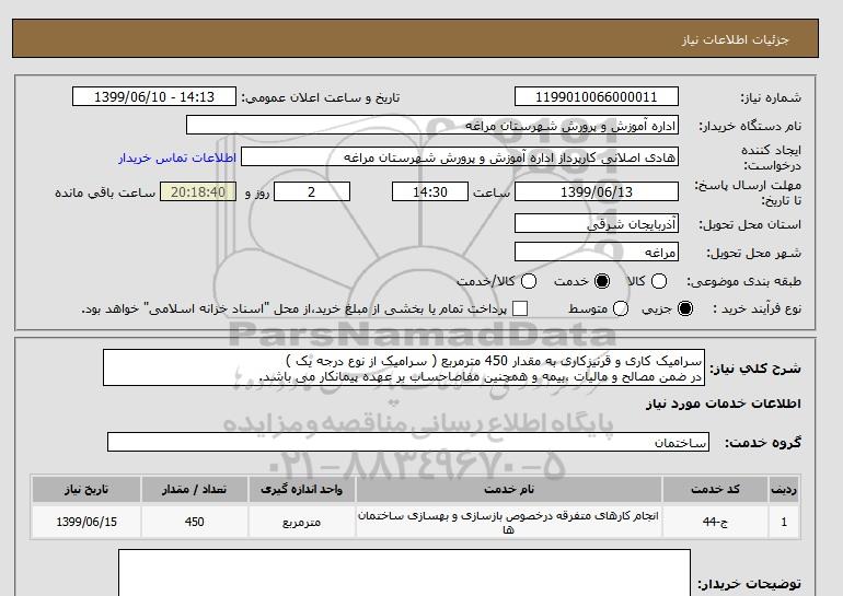 نام دستگاه خریدار:اداره آموزش و پرورش شهرستان مراغه