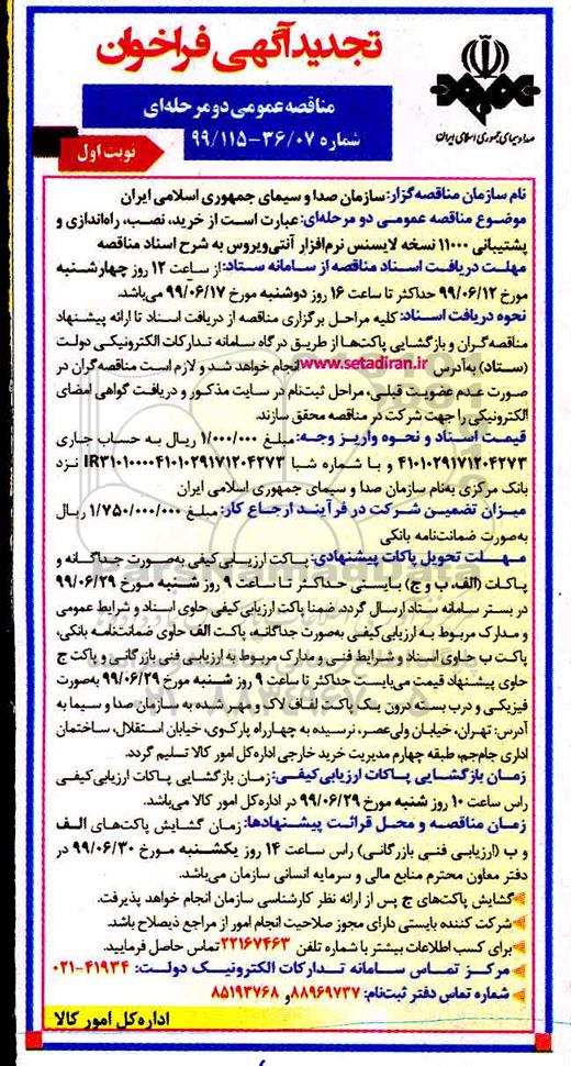 - نام سازمان مناقصه گزار: سازمان صدا و سیمای جمهوری اسلامی ایران