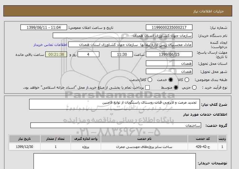 شرح کلی نیاز: تجدید مرمت و لایروبی قنات روستای راستگویان از توابع فامنین