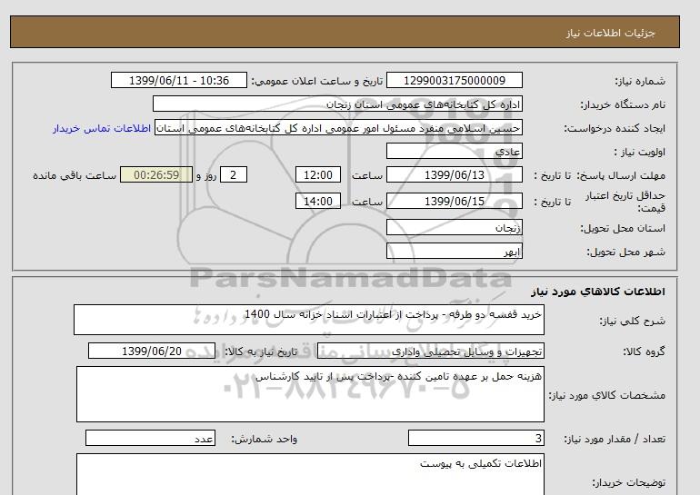 نام دستگاه خریدار:اداره کل کتابخانه های عمومی استان زنجان